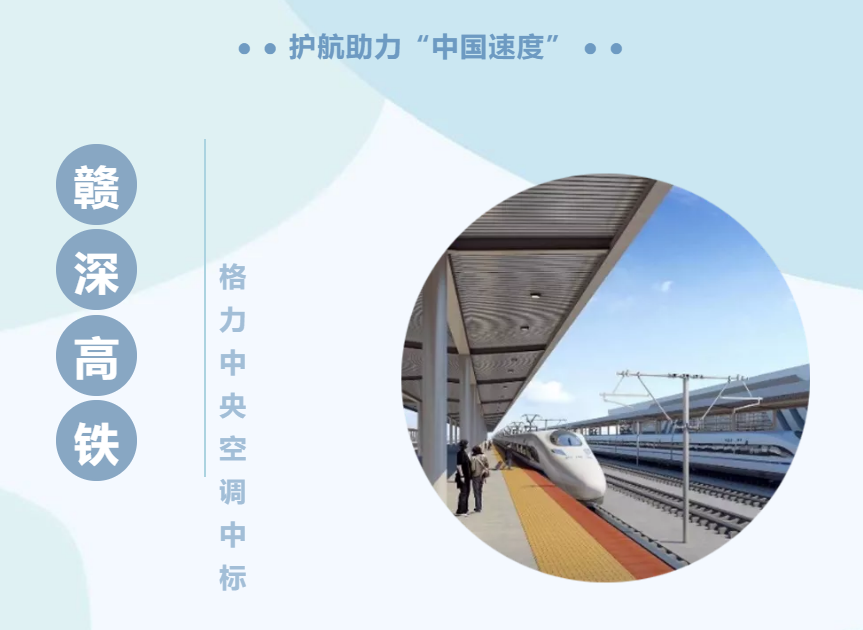 喜訊|格力中央空調再次中標贛深高鐵,護航助力“中國速度”,本次項目共選用格力中央空調機房空調700臺、格力磁懸浮離心式冷水中央空調機組3臺、格力蒸發冷卻一體式冷水中央空調機組16臺、格力變頻離心式中央....