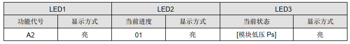 第4步:按以上方法選擇“01”進(jìn)入室內(nèi)機(jī)冷媒回收,所有基礎(chǔ)模塊數(shù)碼管和狀態(tài)燈顯示如下: