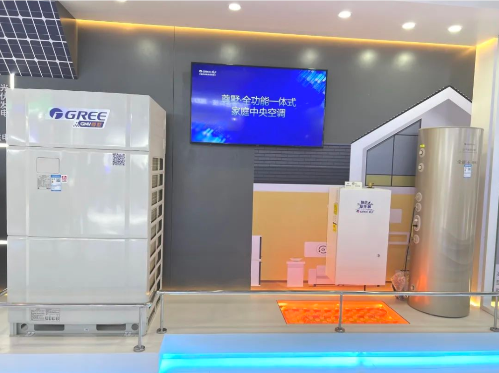 格力自主研發(fā)了“全球”光伏直驅(qū)變頻離心機系統(tǒng),該系統(tǒng)打通了三元(光伏、空調(diào)、市網(wǎng))之間交直流切換的鏈條,通過光伏獲得的電力可以直接轉(zhuǎn)換到空調(diào)上。在光伏直驅(qū)技術的基礎上,將光伏發(fā)電技術、儲能技術、高效變頻多聯(lián)機技術及能源信息智慧管理技術進行有機結合,利用光伏、儲能實現(xiàn)變頻多聯(lián)機組內(nèi)部的直流化,該技術實現(xiàn)了儲能供需聯(lián)動、平緩峰谷,光伏自給自足、就地消納。