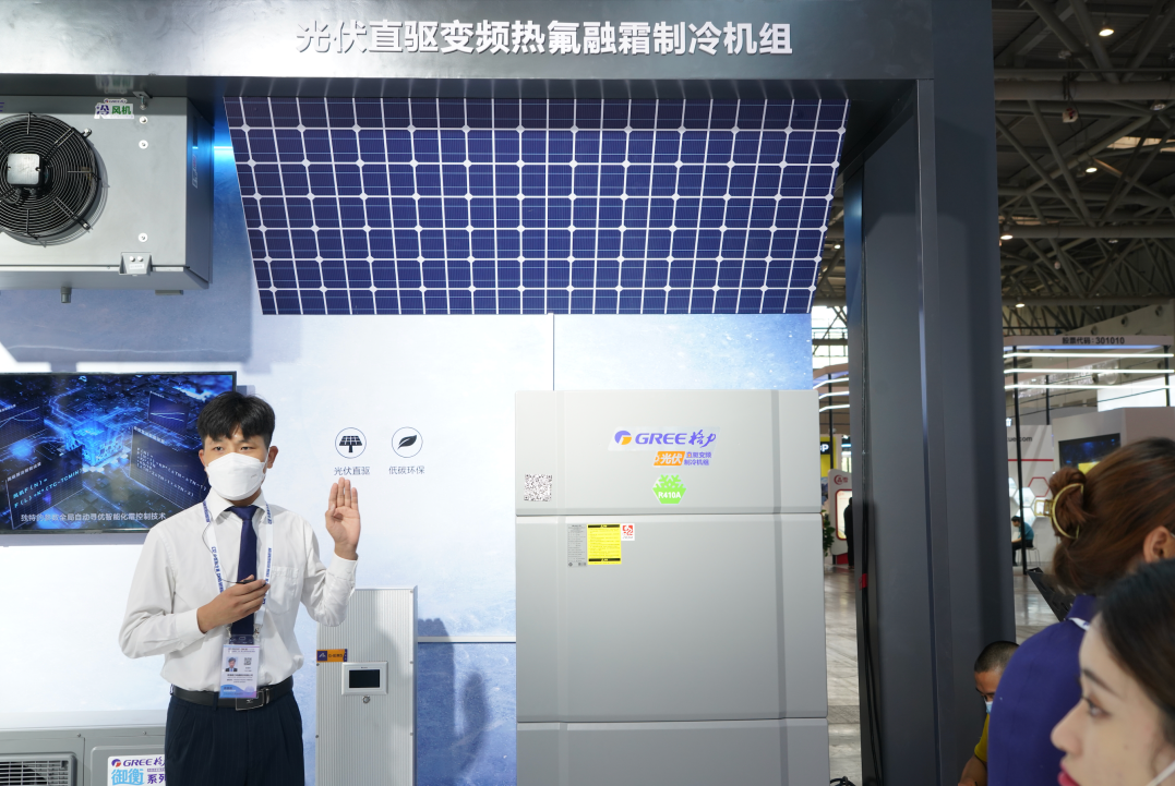 格力自主研發(fā)的光伏直驅(qū)變頻熱氟除霜制冷機組,將光伏直驅(qū)技術與光伏發(fā)電技術、冷凝機組結合,是一套清潔、安全、可靠、智能、高效的多能源綜合應用系統(tǒng)。該系統(tǒng)包括光伏發(fā)電、儲能、充放電、冷凝機組用電、電網(wǎng)互動等多種能源形式。集“光伏(儲)直流直驅(qū)技術”“多端多元換流技術”“四象限全控整流技術”“全網(wǎng)通自適應技術”于一體,具有“0電費”“0浪費”“0擔心”的特點。