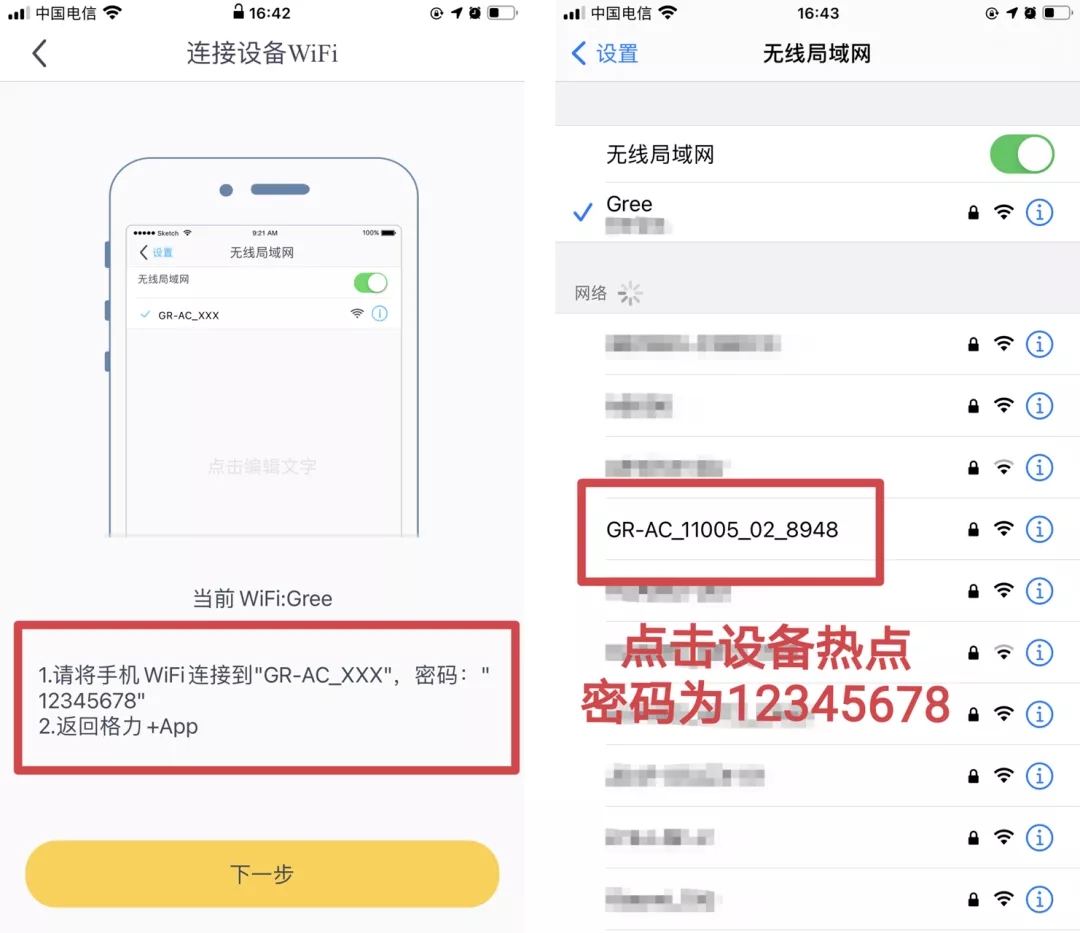② iOS系統:選擇GR-AC_XXX的熱點,密碼為12345678。
