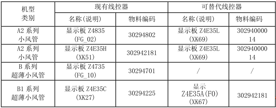 1 、線控器升級換代,不可與選配清單外的線控器混搭,安裝送貨之前需要服務人員確認好線控器型號。