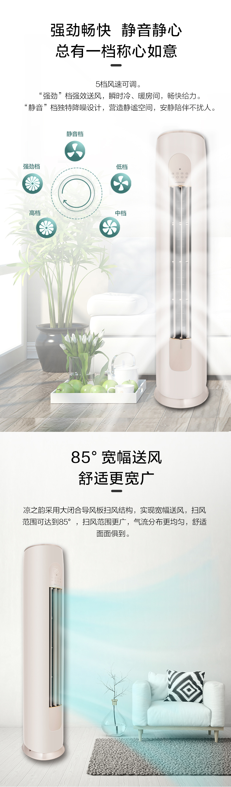 創新艦體造型,為精致家居添時尚色彩。85°寬幅送風,全屋舒適共享