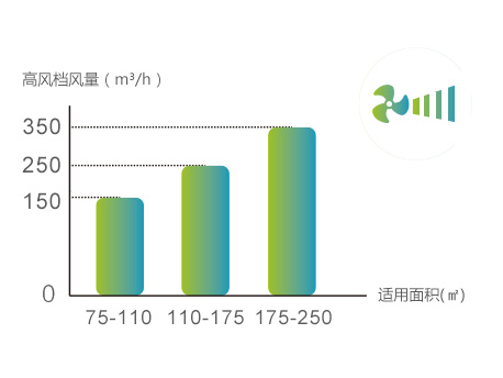 機組設有低、中、高、強四檔,滿足不同住宅面積和不同接管尺寸下新風需求。