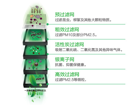 過濾網前增加了銀離子網,具有抗菌、抑菌和保護過濾網的作用。