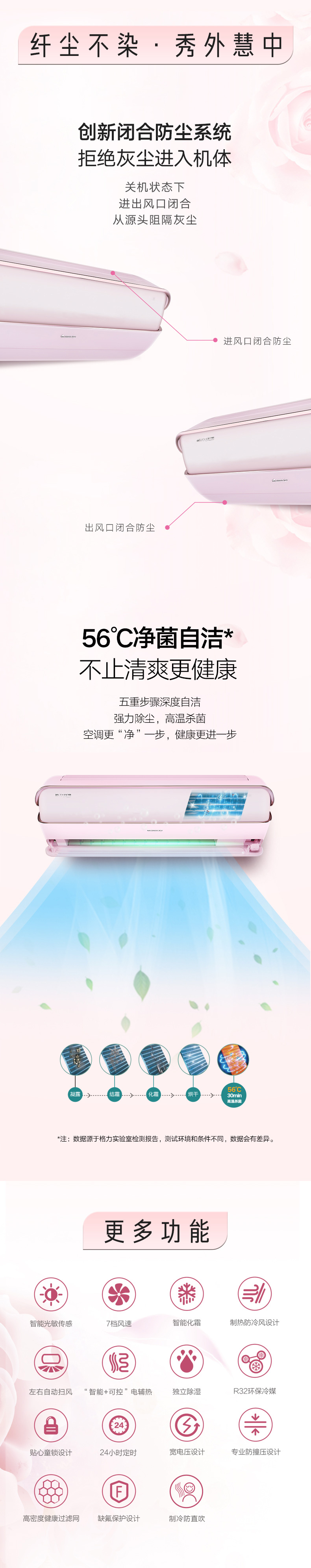 主要特點:360度運動大導風板 18分貝低噪音 56℃凈菌自潔 65℃高溫制冷