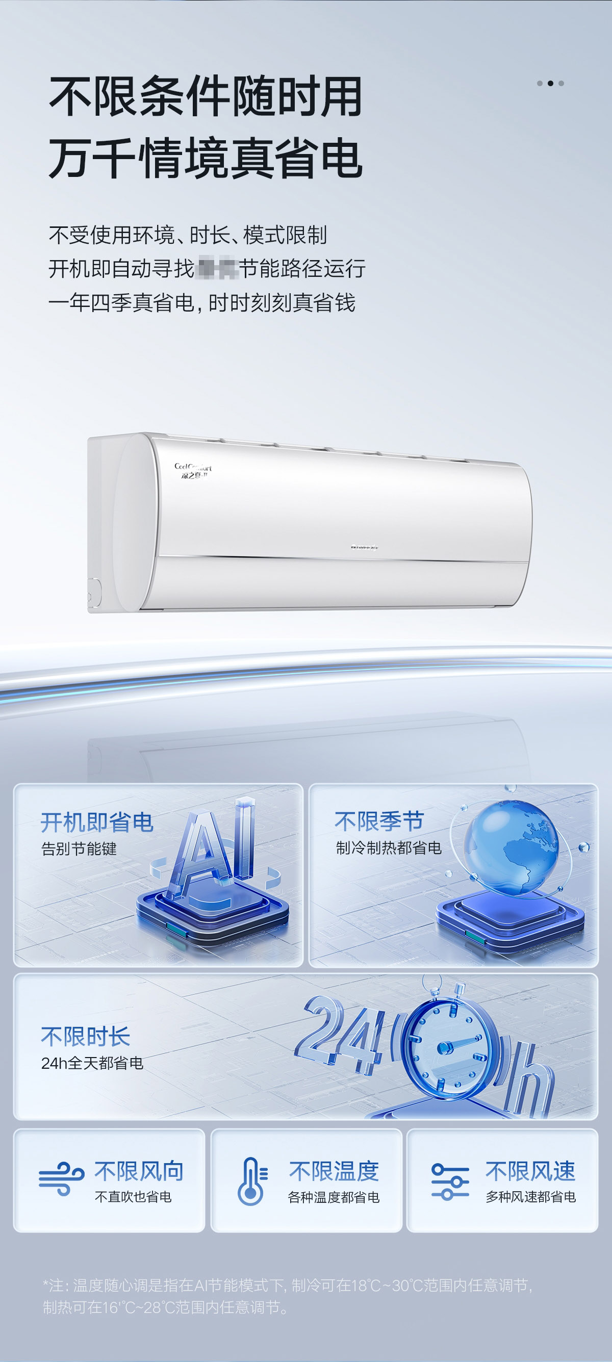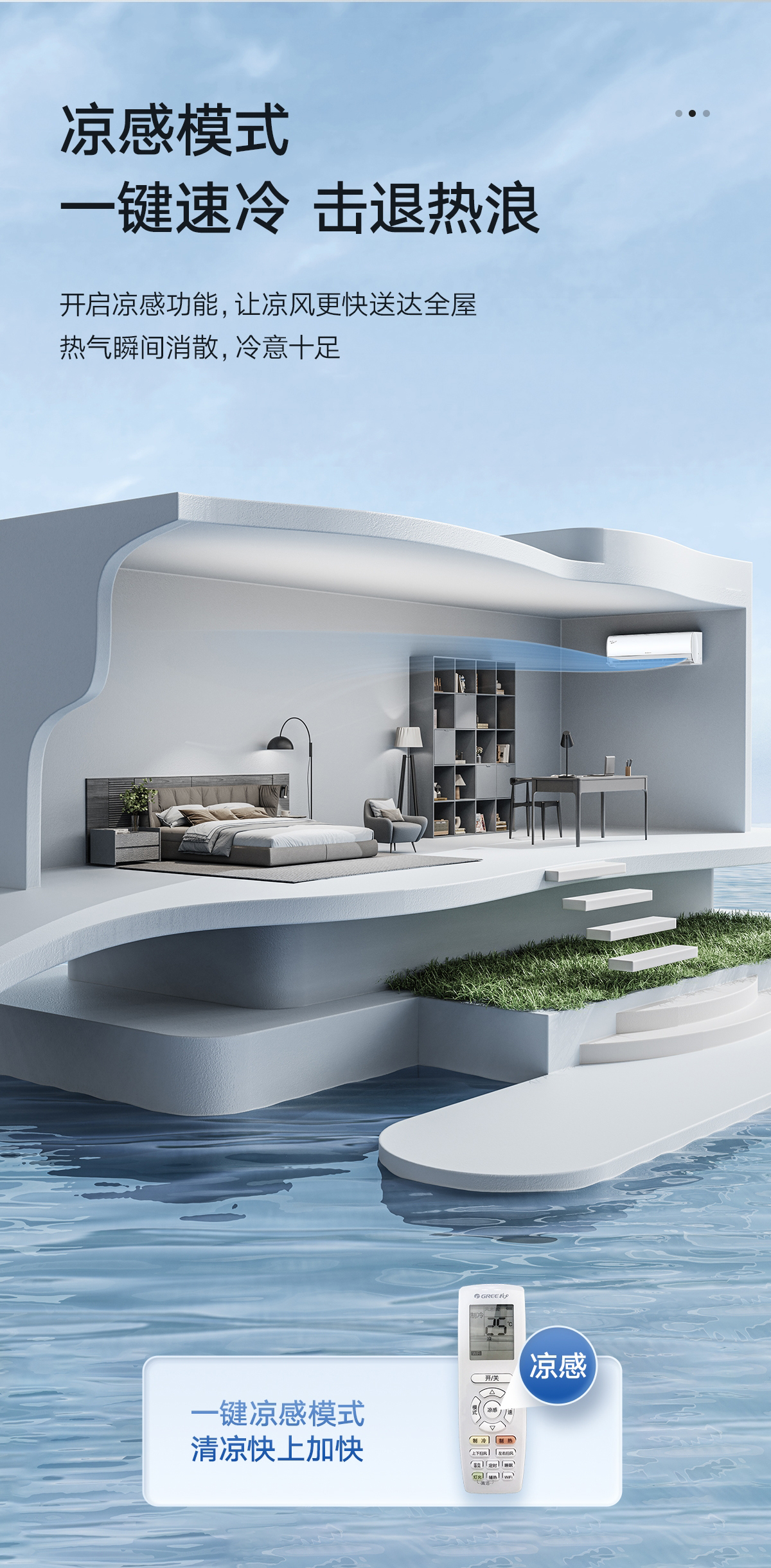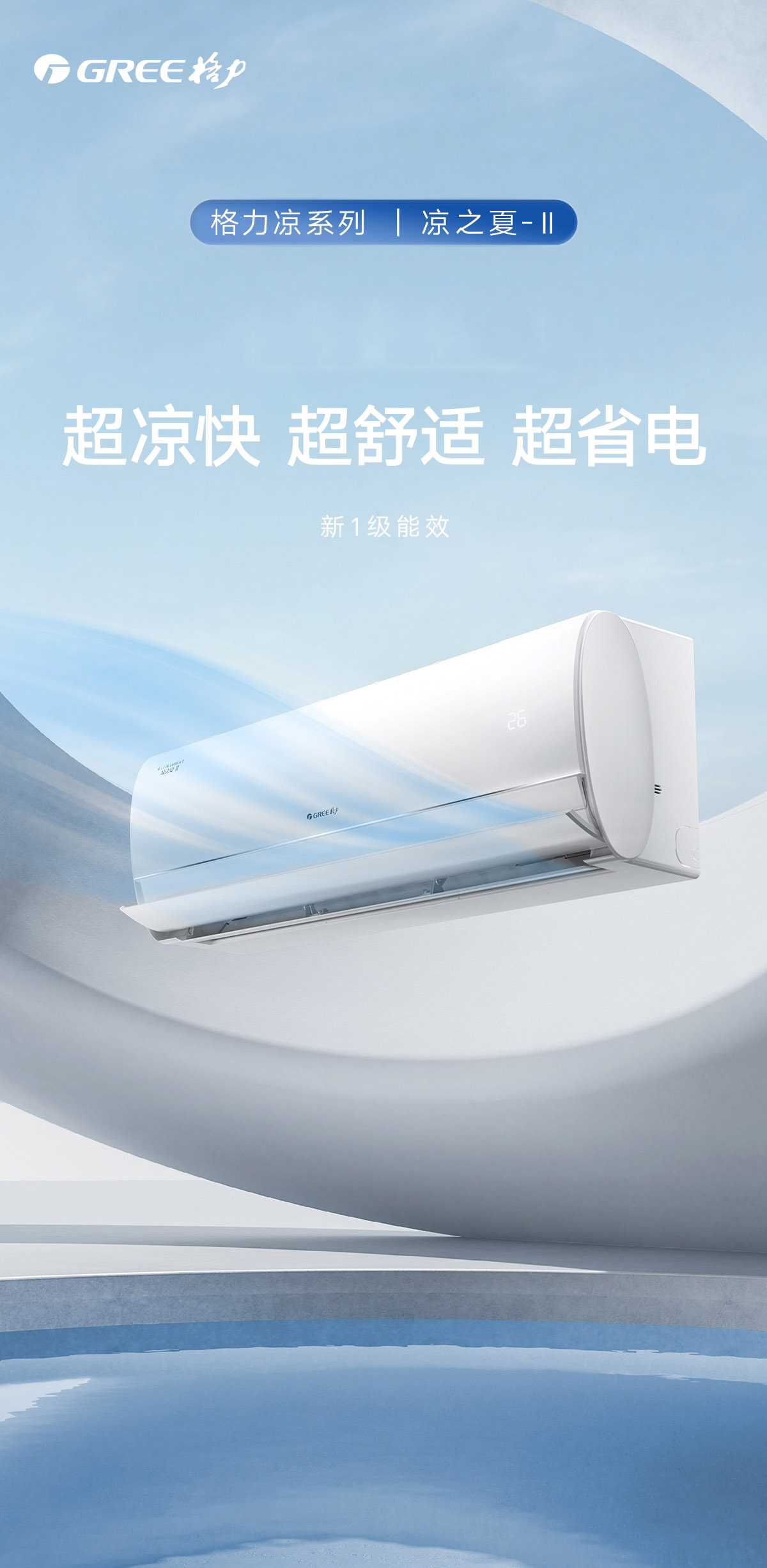 格力涼之夏-Ⅱ掛機,全新升級,新一代。澎湃風量,清涼不等待。搭載運動子母導風板,冷風不吹人,全域有涼感。更有AI動態節能科技。